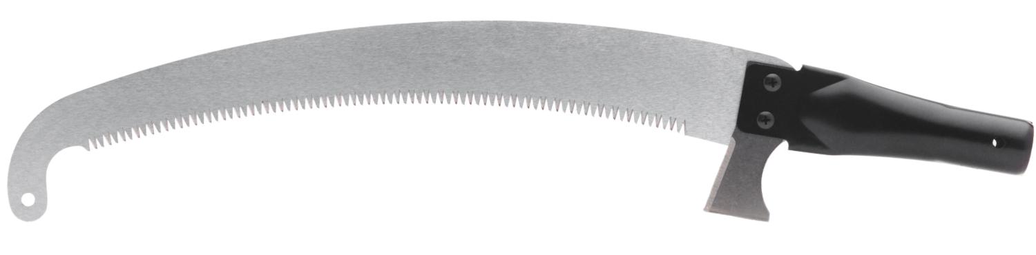 Buet sagblad med krok i forkant, samt såkalt støtkniv for å skjære barken slik at den ikke flises opp.