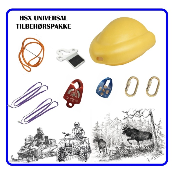 Med denne tilbehørs pakken vil du ikke stå fast og er utstyrt for de fleste utfordringer. Er det Skogsmannen som skal ha frem tømmer over stubber og stein eller jegeren som skal frakte sitt bytte i ulent terreng. HSX-Universal tilbehørspakke inneholder utstyr så du ikke står fast.
