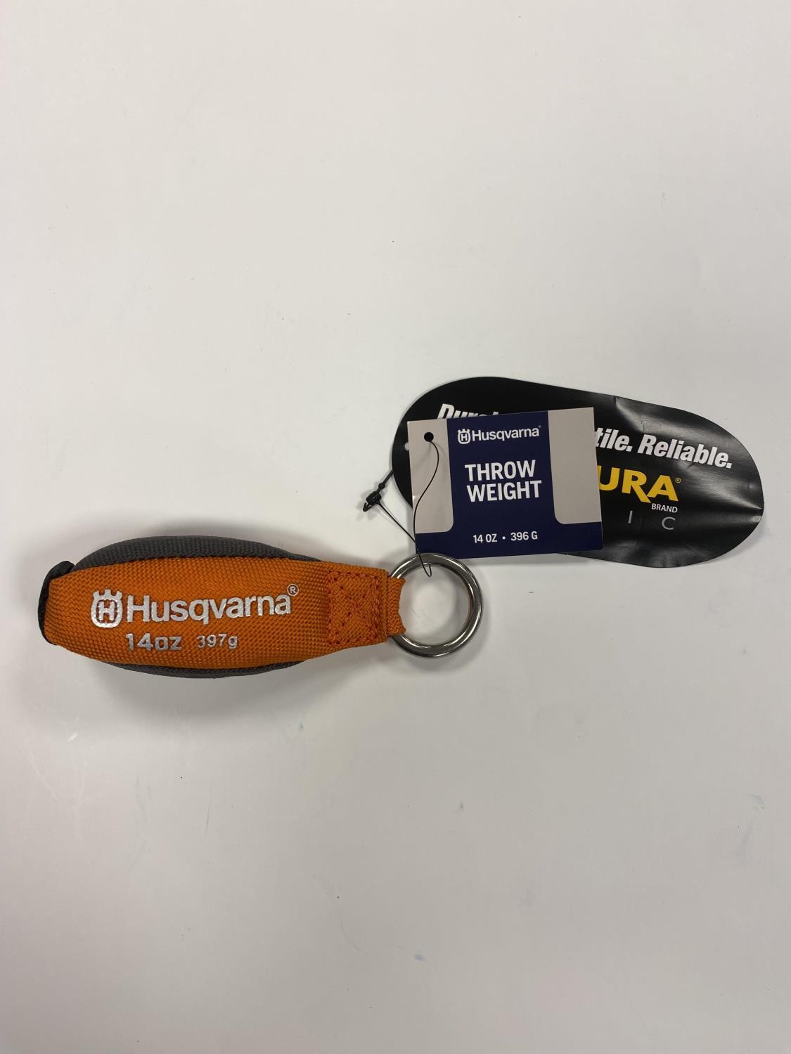 Laget av 100 % 1000 denier Cordura-stoff. Slitesterkt. Forbedret holdbarhet med høy strekkstyrke. Tofarget mønster. Svært lett synlig takket være lys oransje farge. Solid stålring gjør det enkelt å feste kastelinen. Nedre overføringssløyfe. Hurtigfeste for karabinkrok. Lukking med sammenhefting hindrer at posen sprekker.