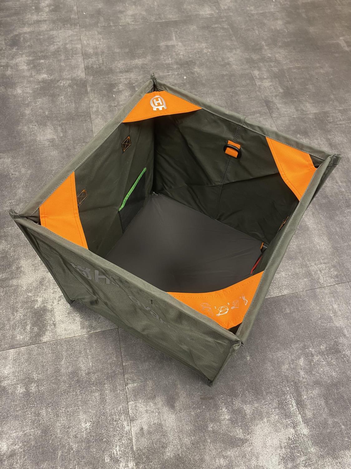 Stor 16-tommers kubekonstruksjon. Hindrer at kastelinen sitter fast og holder kastelinen ren. Kan enkelt foldes ned til en trekant på 8 x 16 tommer. 2 innvendige lommer holder vekten atskilt. Innvendig krok og løkkestropp og D-ring for raskt å fange enden av linen. 2 utvendige hjørneløkker gjør det enkelt å åpne. 4-veis strekkbunn, som utvides under lagring for å hindre at det oppstår sømfeil.