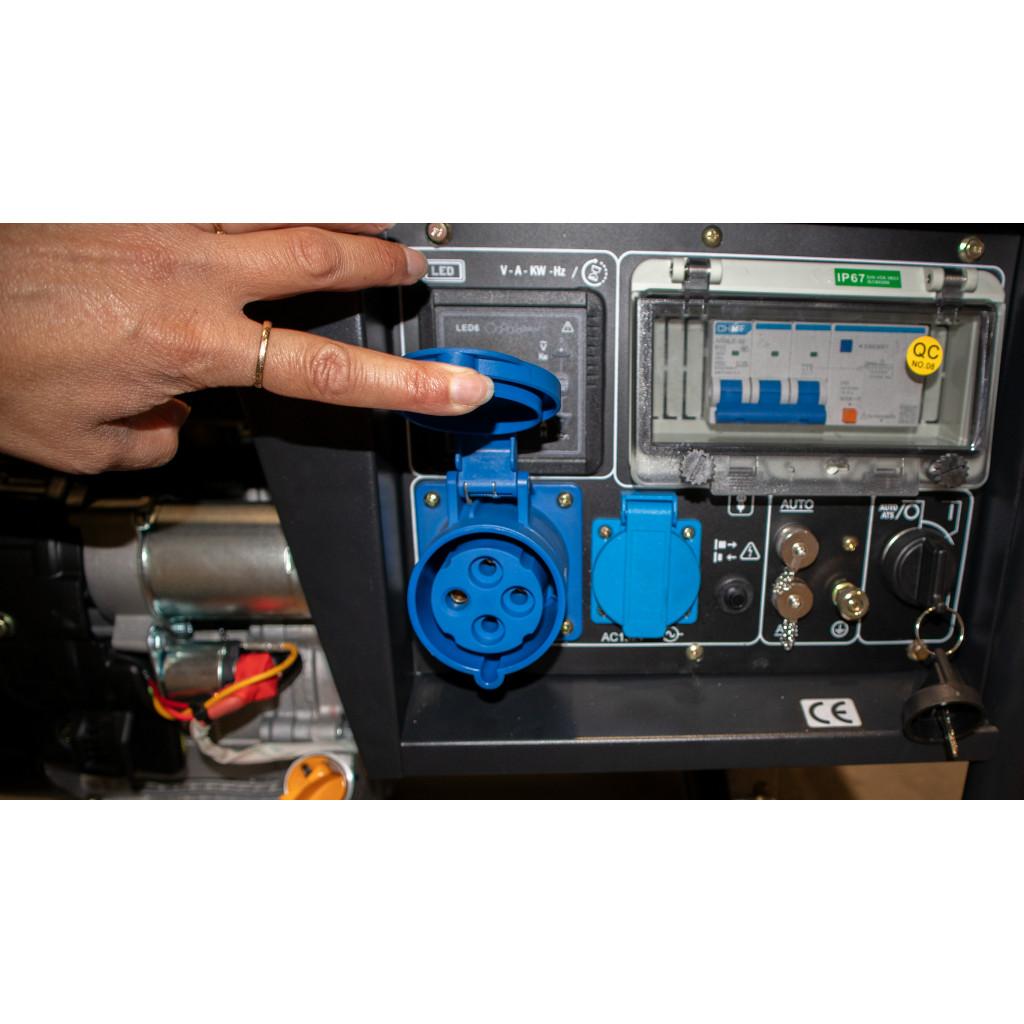 HYUNDAI HY10000LEK-3 Strømaggregat 10kVA – Elektrisk start – Bensin – 230V 3-fasnnHY10000LEK er et kvalitets-aggregat i PROFF serien til Hyundai beregnet for anlegg og industri, også til fritidsbruk dersom det er behov for dette. nn230V 3-FAS bensinaggregat med 4-takts luftkjølt innsprøytingsmotor med elektrisk start og mulighet for ATS. nAggregatet er konstrurert til å drifte 230V 3-FAS utstyr, som for eksempel vannpumper, verktøy eller vifter. nAggregatet egner seg ikke som et nødstrømsaggregat til for eksempel en bolig, da fasene ikke skal splittes (belastest ulikt) nSkandinavisk Batteriimport AS har direkte import av Hyundai aggregater fra produsent.nDette gjør at vi kan tilby meget gode betingelser på disse, noe som kommer deg som kunde tilgode. nFordeler:nStor drivstofftank på 25 liternSolid ramme gir god beskyttelsenAVR for jevn utspenningnStor lyddemper reduserer støynOlje og varslingssystem med automatisk stengning av motornKontrollpanel med oversiktlig LCD displaynATSnElektrisk start nProduktinformasjon:nFrekvens: 50HznKontinuerlig effekt: 9,4kVA (230V 3-FAS) nMaks effekt (peak): 10kVA (230V 3-FAS)nSpenning: 230V 3-FASnStrøm: 32A (230V 3-FAS)nUtganger: 1x32A 230V nBensintank: 25ltrnMaks anbefalt driftstid: 4 timernStøynivå @7m : 72 dBanElektrisk start og snortstartnStartbatteri: 14AHnVekt: 104kgnDimensjoner: 740x540x555mmnMotortype: Hyundai IC460E (bensin)nMotoreffekt: 12,5HK / 459ccnOljemengde: 1,1lnnnDrivstoff BensinnMaks effekt 7500WnStart ElektrisknInverterteknologi NeinAutonom drift? NeinTypisk bruk ARBEID og FRITIDnVæskekjølt? nSpenning 230V 3-fasnStørrelse 740x540x555 mmnVekt 104 kg