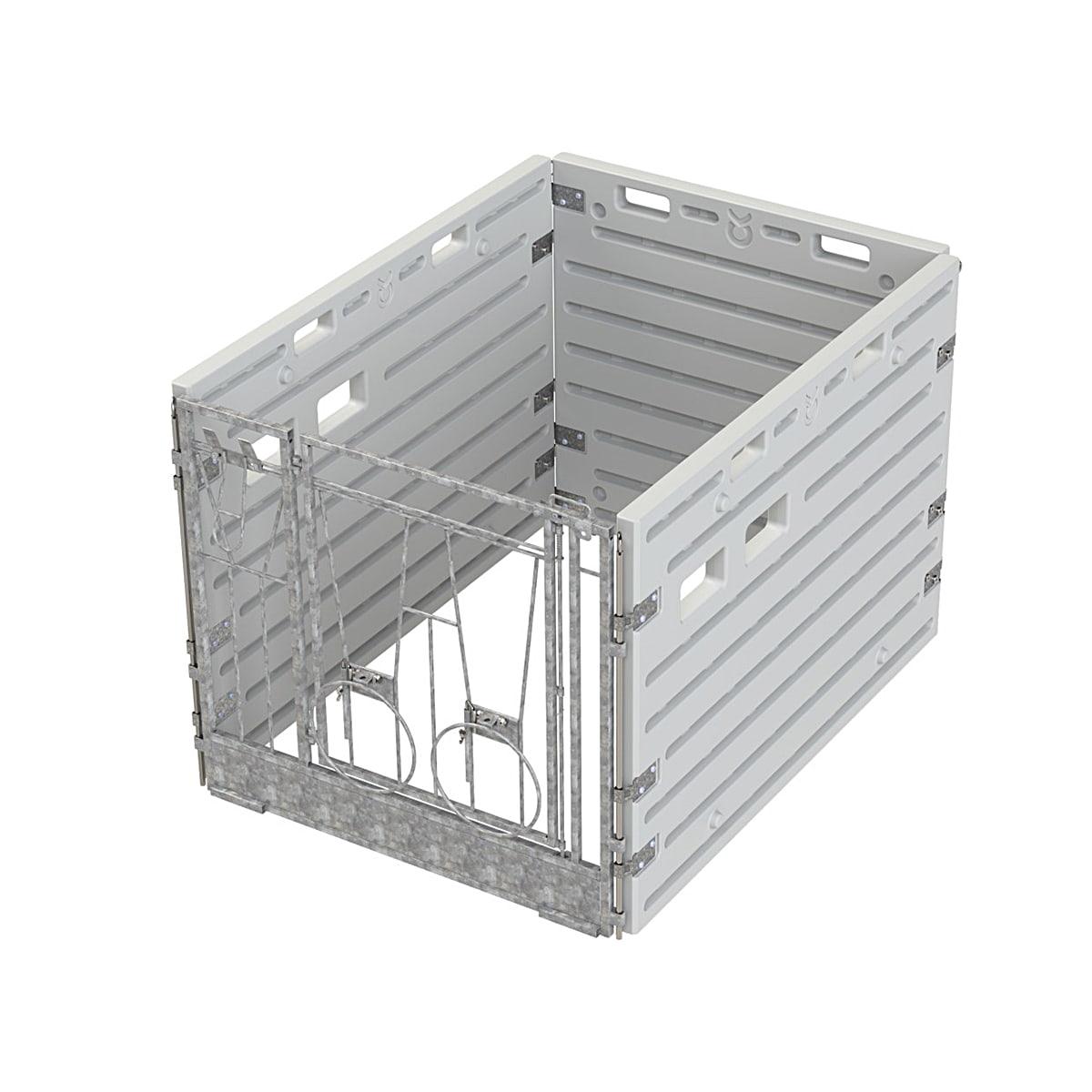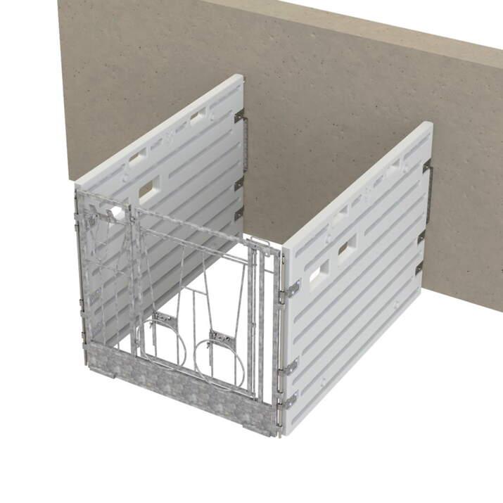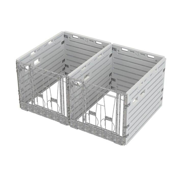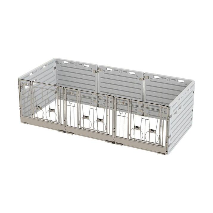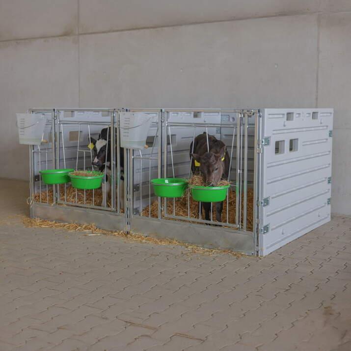 Front for kalveboksnDen fremre delen er utstyrt med en svingdør og et fast drikkeområde – perfekt for å venne kalver til å drikke fra en bøtte. Dette inkluderer et vannbøttefeste og to nedfellbare bøtteholdere. Døren åpnes enkelt med en enhåndslås, noe som gjør vedlikeholdet raskt og enkelt.nnL x B x H: 125 x 10 x 114 cmnnBygg en fleksibel kalveboks etter dine behovnMed våre kalvebokskomponenter kan du velge om du vil kjøpe delene separat eller sette sammen en komplett boks. Front, sidevegger, bakvegg, monteringsstenger og veggbeslag selges separat – noe som gir deg full frihet til å bygge en løsning som passer din besetning og ditt rom.nnDu kan starte med en enkelt boks og enkelt utvide til flere eller åpne opp for gruppeoppstalling ved å fjerne sideveggene mellom boksene. Alle deler er enkle å montere, rengjøre og flytte om nødvendig.nnRobust konstruksjon i slitesterk plast med glatte, hygieniske overflater gjør systemet slitesterkt, enkelt å vedlikeholde og praktisk i hverdagen.