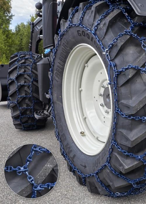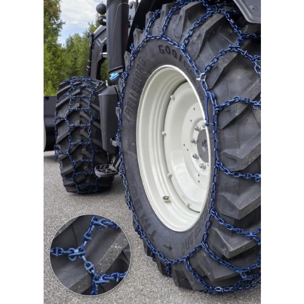 Unik kjetting for snøbrøyting og kjøring på islagte veier.
