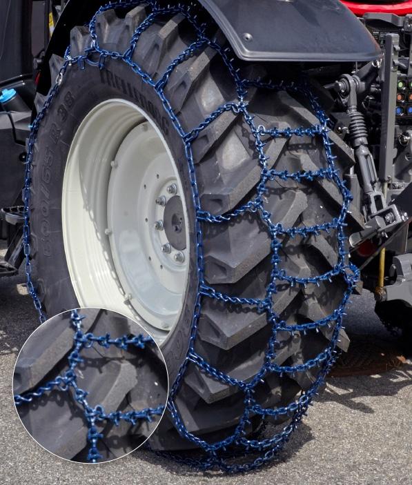 Unik kjetting for snøbrøyting og kjøring på islagte veier.