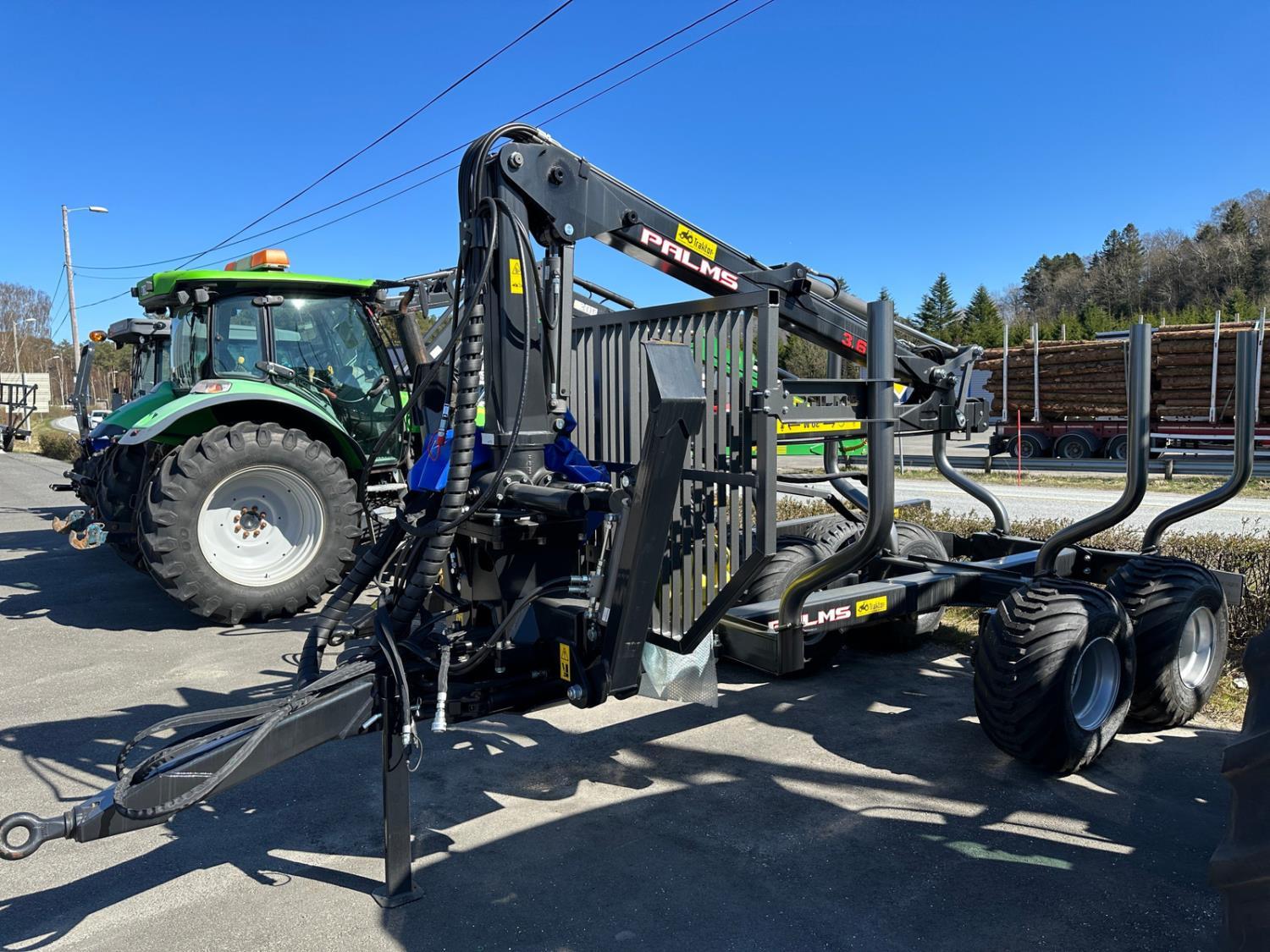 Palms er Europas ledende produsent av tømmervogner. Moderne produksjon og lakkering gjør at finish og holdbarhet er suveren. Et bredt utvalg av vogner, kraner og ekstrautstyr gjør at de er den ledende produsenten. De har sin egen mekaniske drift (kardangdrift) såvel som hydraulisk 4wd. Den mekaniske kardangdriften er langt rimeligere og tilpasses din traktor. Komponenter for produksjon nesten et år frem i tid er på lager og gjør at leveringstiden på skreddersøm er kortere enn hos de fleste konkurrenter.