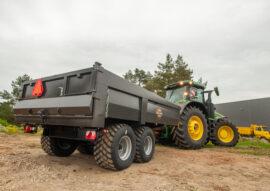 Beskrivelse Palmse PT 1300EMB. * Nytt design med enda sterkere kasse og rette kanter i bunn. 238cm bredde!,75cm høye sider og 467cm lengde * 12.810 kg nyttelast og 8,3m3 lastevolum !! * Kraftig pendelboggi med hydraulisk brems på begge akslinger. (Standard er brems på 1 aksling, ADR-akslinger) * Hydraulisk entreprenør-luke. * 4stk kraftige innfelte surrekroker i kassen + 4 utvendig ramme. * LED markeringslys Avbildet lagerført modell har følgende utstyr med i pris. * . * Overdrysslem foran. * 520/50-17 Hjulmontering * Brems på begge akslinger * Topp/sidehengslet bakluke/strølem. LAGERFØRT MODELL HAR DETTE UTSTYRET. Palmse Metall OU er en av Europas ledende produsenter innen tilhenger for traktor, anlegg og landbruksmarkedet. Deres produkter er laget med høy presisjon og har en meget god finish. Ring for et godt tilbud ! Vi er behjelpelige med frakt og finansiering !