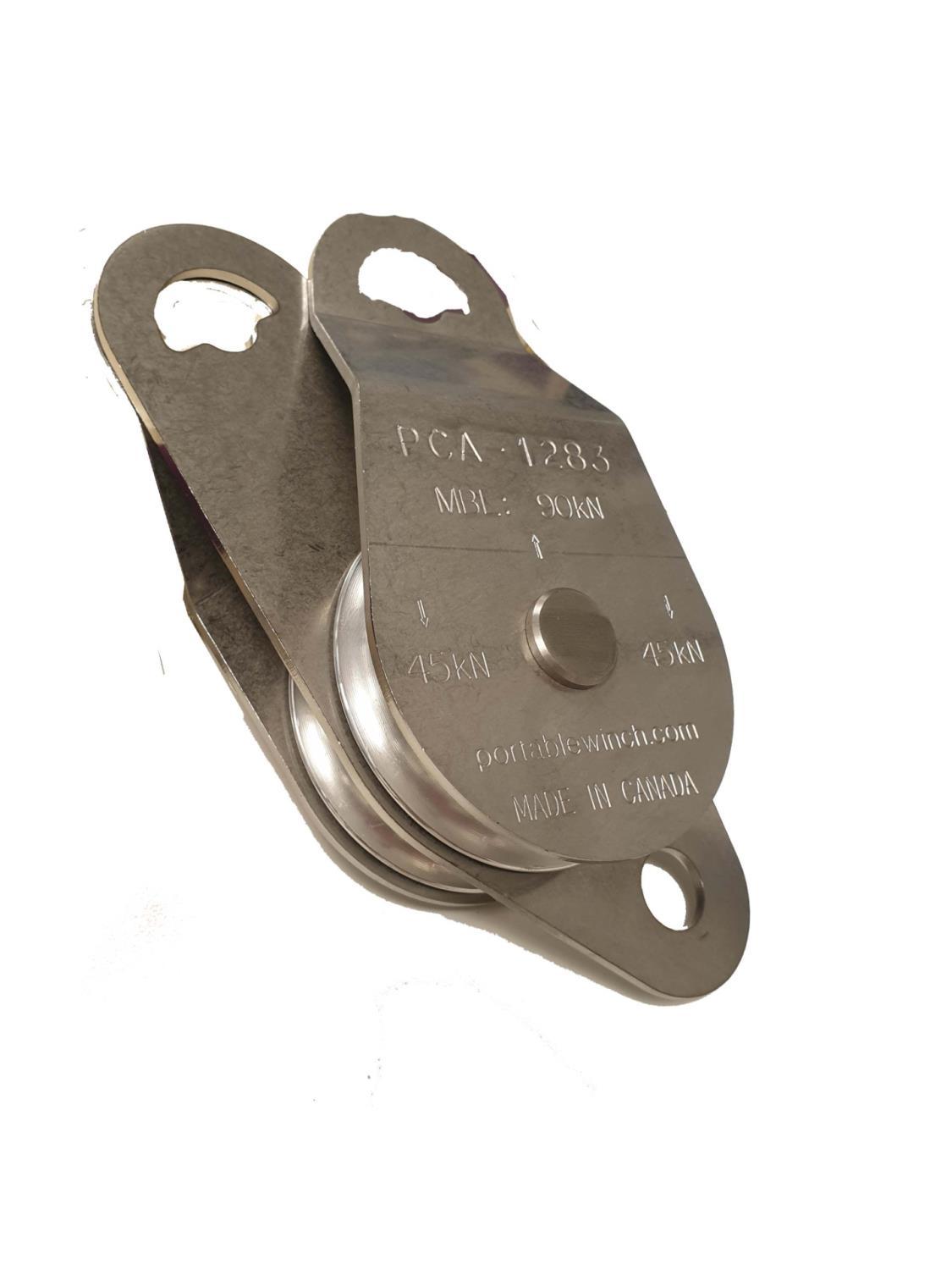 Ståltaljene er produsert med sideplater i rustfritt stål og aluminiums skiver (hjulmed riller). Svingsideplatene fjerner behovet for å tre tauet og gjør det derfor mulig å installere raskt.Dessuten hindrer de tauet i å falle ut når de er lukket.nnTaljeakselen er laget av rustfrittstål og et oljeimpregnert bronselager sørger for sømløs funksjon og en effektivitet på 98%, så å si vedlikeholdsfrittnnMBL: 60kNnnØ 76mmnnVekt: 1 kg