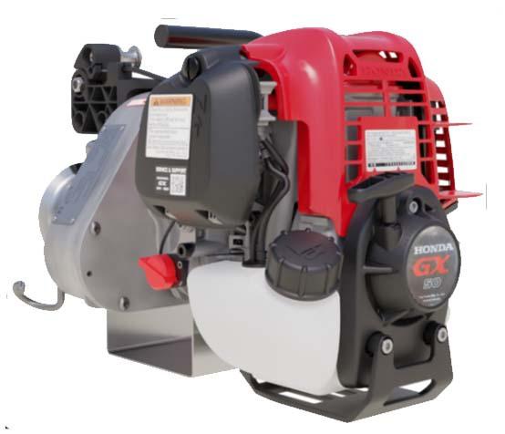 Denne honda`s GX50-motor gir høy ytelse og lett vekt med utmerket drivstoff effektivitet. Det er den første Hond 4-takt`s modellen med 2 hestekrefter som er 360 grader tiltbar under drift.