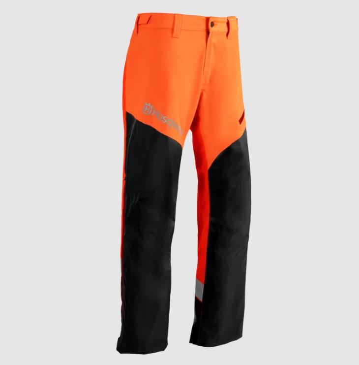 Regnbukse av høy kvalitet laget av slitesterkt, laminert polyesterstoff med mekanisk stretch som, kombinert med tapede sømmer, gir et vannavstøtende plagg som puster. Forsterkningsmateriale over områdene fra over knærne og innsiden av leggene. Elastisk fald bak og borrelåsfester på siden for enkel justering og perfekt passform. Funksjoner som lang glidelås i siden gjør det enklere å ta regnbuksen av og på, og lissehemper passer på at buksene ikke faller ned. Godkjent i henhold til EN343