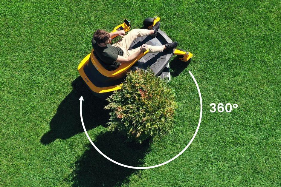 nGYRO 900enAksial plentraktor – BatterinSTIGA Gyro er den eneste drive-by-wire joystick hagetraktoren med STIGA-patentert Direct Drive-teknologi. Den har et 125 cm klippeaggregat med 3 blader, og et intuitivt kjøresystem hvor brukeren kan styre maskinens retning og hastighet. Batteridrevet, energieffektiv og trygg. Den dekker opp til 13 000 m2 klippeareal på kun en lading (ca 150 min kjøretid).nSTIGA patentert Direct Drive teknologinOpp til 13 000 m2 på en ladingn125 cm klippebredde (med 3 roterende kniver)nOpp til 13 km/t toppfart i bakkernSTIGA smart klippe- og kjøremodusnIntegrert STIGA ePower batteripakkenBatteri inkludertnnBatteridrevet, energieffektiv og sikker, STIGA Gyro 900e er den eneste joystick hagetraktoren med STIGA-patentert Direct Drive-teknologi. De doble uavhengige elektriske transmisjonene, en for hvert hjul,ngjør at maskinen kan ha en 360° svingradius for å manøvrere rundt trær, busker og blomsterbed – med god kontroll over retning, styring og hastighet. Den har et 125 cm kraftig klippeaggregat, utstyrt med tre roterende kniver – hver drevet av 1,5 kW motor for å gi den beste ytelsen. De nye knivene er designet og produsert av STIGA, de gjør at Gyro har de beste klipperesultatene både i bakutkast og Multiclip-modus. Klippeaggregatet kan justeres i åtte forskjellige posisjoner kun med en knapp på kontrollpanelet. STIGAs smarte klippe- og kjøremodus lar deg enkelt velge mellom tre knivhastigheter fra 2800 til 3200 rpm og tre kjøremodus fra 4 – 13 km/t, avhengig av type arbeid som utføres. STIGA Gyro 900e klipper store arealer helt opp til 13 000 m2, med lite støy og vibrasjoner. Gyro 900e gir god stabilitet i bakker og skråninger opp til 15°, siden den har en god vektfordeling og et svært lavt tyngdepunkt (kun 55,3 cm). Gyro er trygg å kjøre, vi har forsterket sikkerheten med både fartsbegrensning og sikkerhetsbrems i tilfellet en nødsituasjon. Arbeid komfortabelt takket være et sete med høy ryggstøtte og et bredt fotbrett. Dobbel parallellfjæringssystem som absorberer vibrasjoner over humpete underlag gjør kjøringen mer komfortabel. Alle kontroller er innen rekkevidde og kan håndteres med kun en fingertupp.nnDEMOKJØRT