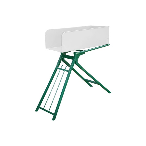 Vippestativet er vår mest avanserte modell for pakking av små vedsekker. Vedkubbene pakkes enkelt i kassen. Sekken tres så over kassen, før du vipper den fylte sekken ned. Stativet sørger for ergonomisk riktig arbeidshøyde og gjør vedhåndteringen lettere. På denne måten sparer du ryggen for unødvendige belastninger. Lakkert stål.
